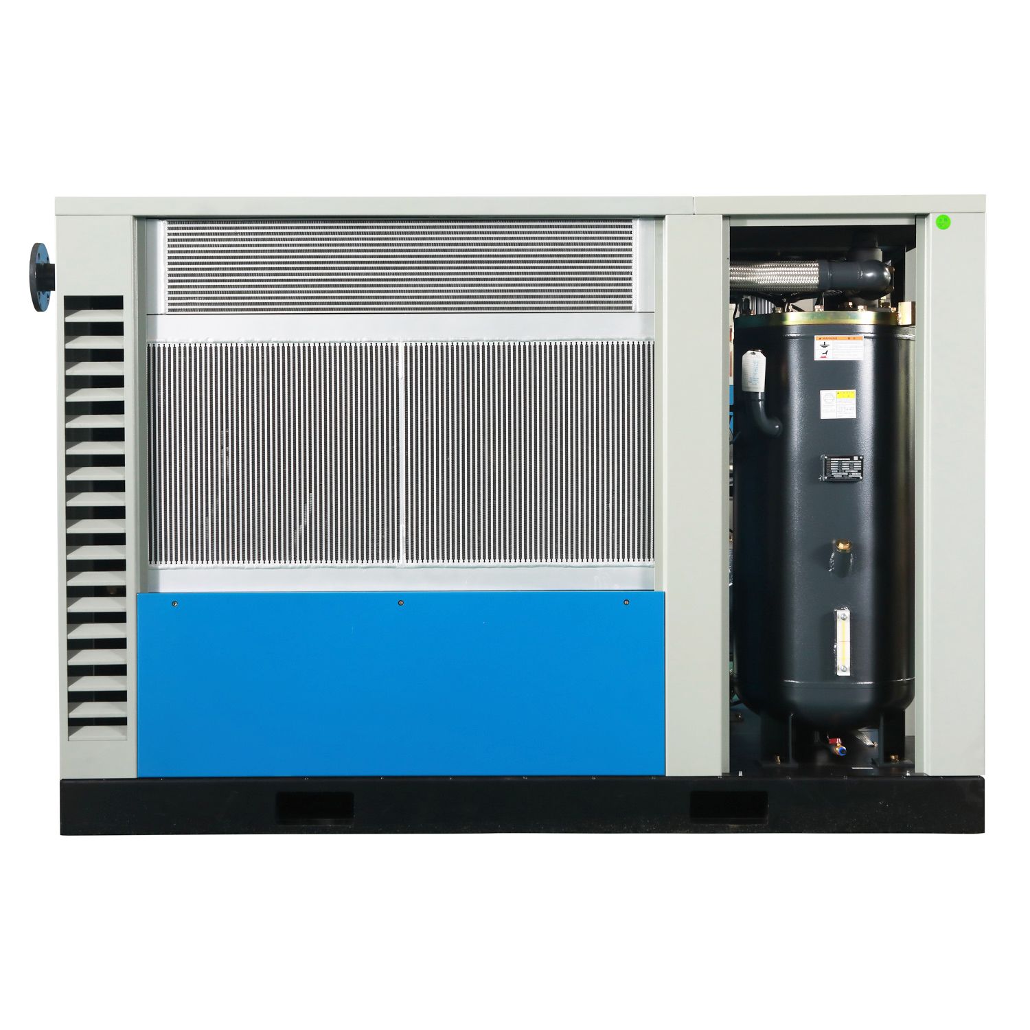 • Diseño de plataforma base Anti-Vibraciones y gabinete totalmente cerrado, recubierto e insonorizado, que reduce en gran escala el nivel de ruido del Compresor de Aire para Grandes Caudales.