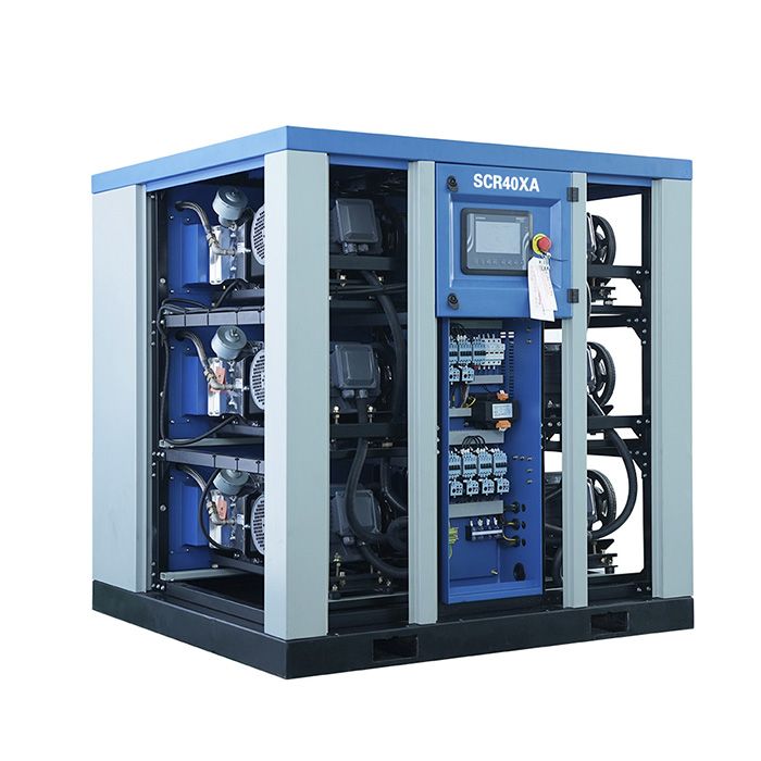 - Posee un Controlador PLC inteligente con medidor de corriente en línea integrado para maximizar el ahorro energético de nuestro Compresor de Aire Scroll.