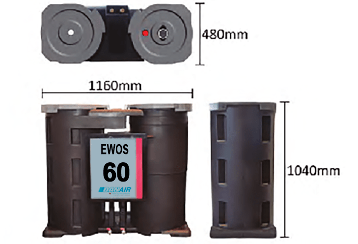 - El modelo EWOS 2 puede ser instalado como una unidad independiente o puede ser integrado dentro del Compresor.
